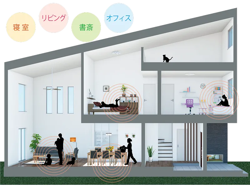 その空間内ではヒトの体内の水分子を微細振動させ、健康をサポートします。