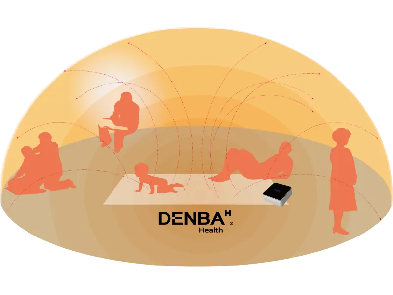 DENBA Healthが形成する電位空間内にいるだけで、マットに触れていなくても、身体の隅々まで広範囲に作用する全身トータルコンディショニングシステムです。