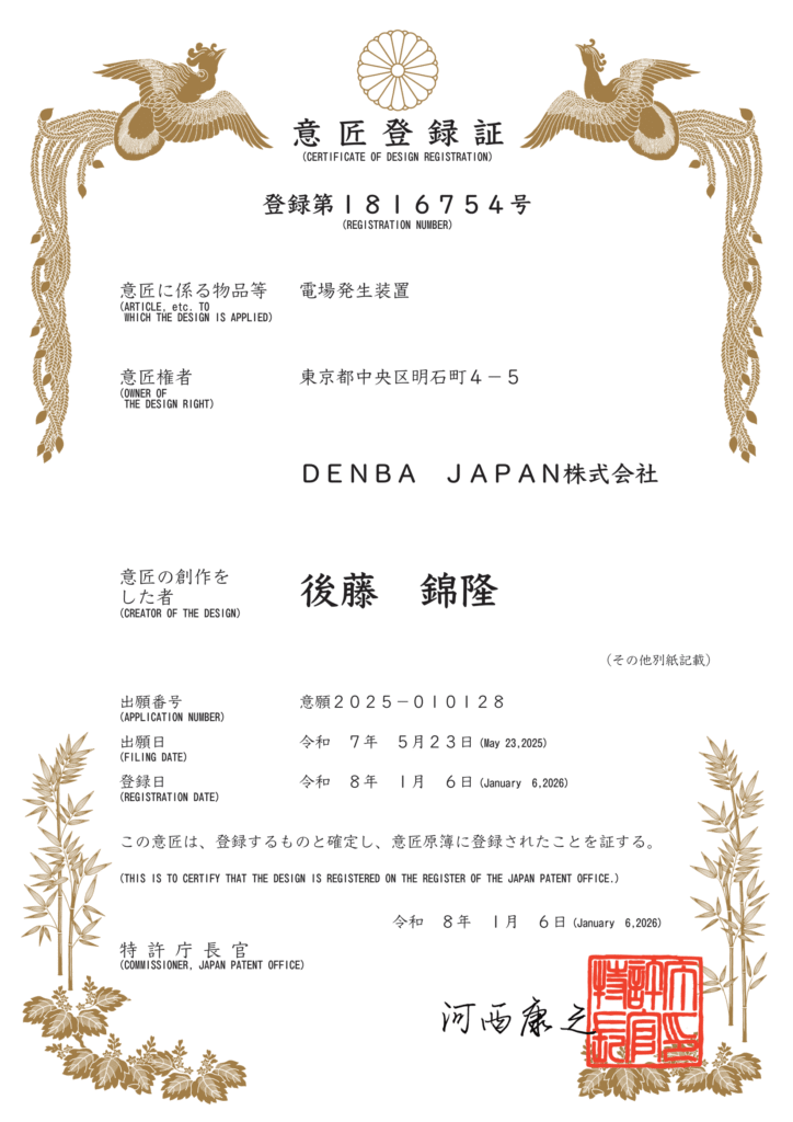 【意匠に係る物品等】電場発生装置